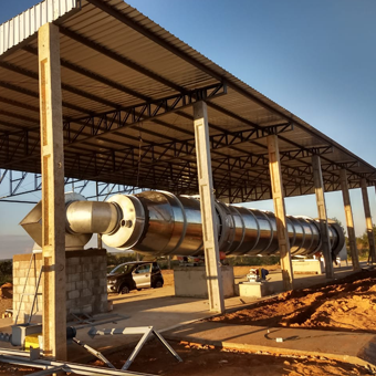 Tecnologia contínua que seca, trata e estabiliza os dejetos.